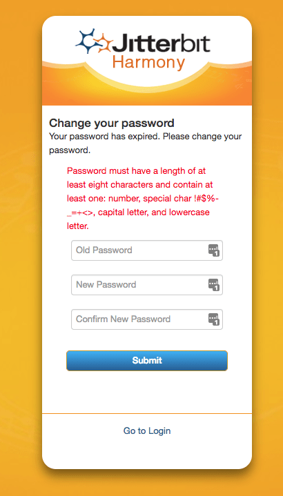 Password must have a length of at least eight characters and contain at least one: number, special char !#$%-_=+<>, capital letter, and lowercase letter.