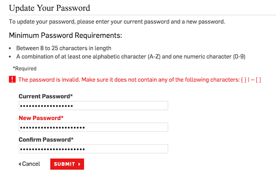 25 maximum characters and disallowing some specials.
